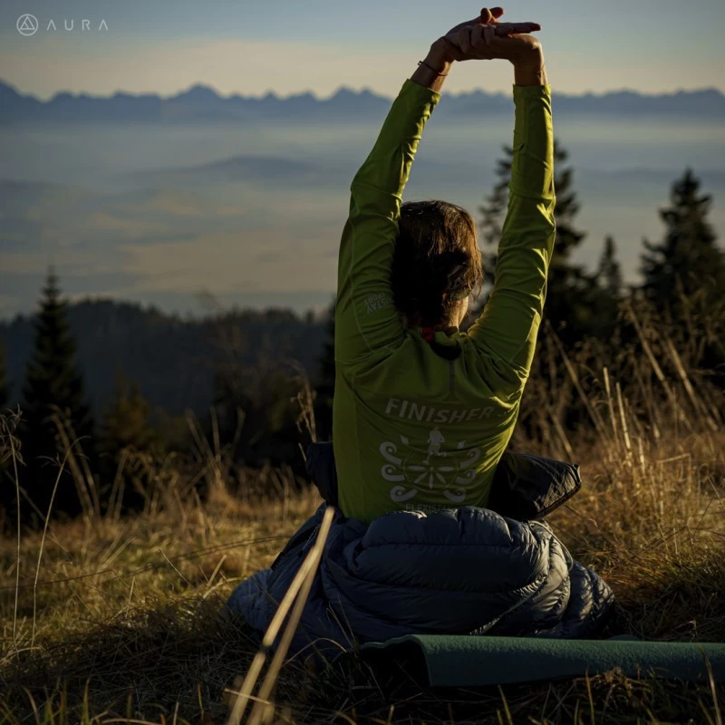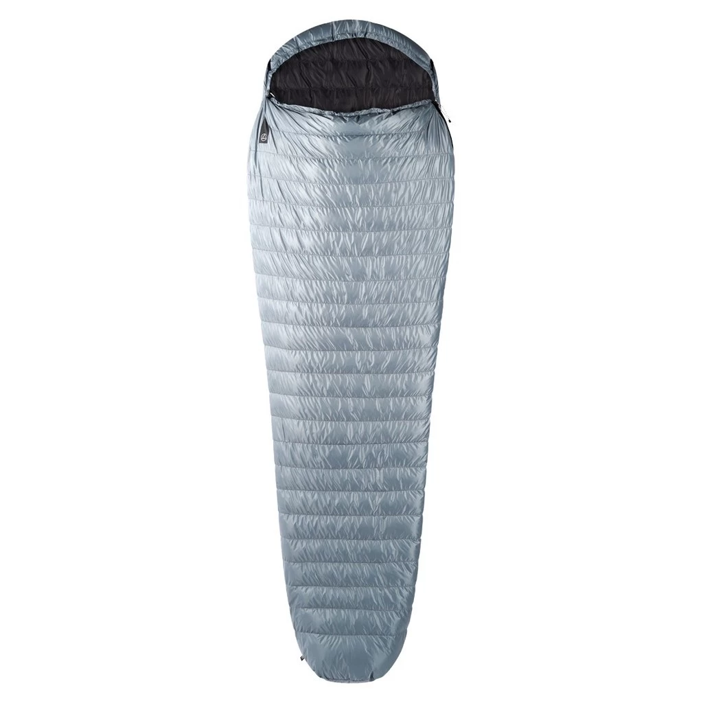 Le NOM 400/800 d’Aura est un sac de couchage garni de 400 grammes de duvet d’oie polonais de qualité, de 800 cuin. Le duvet est réparti dans des compartiments en forme de H afin de limiter les déperditions thermiques. Il ne dispose pas d’une forme momie classique, mais d’une forme en trapèze. Grâce à cela et à sa coupe ajustée, il offre un bon rapport entre le poids et la température de confort.