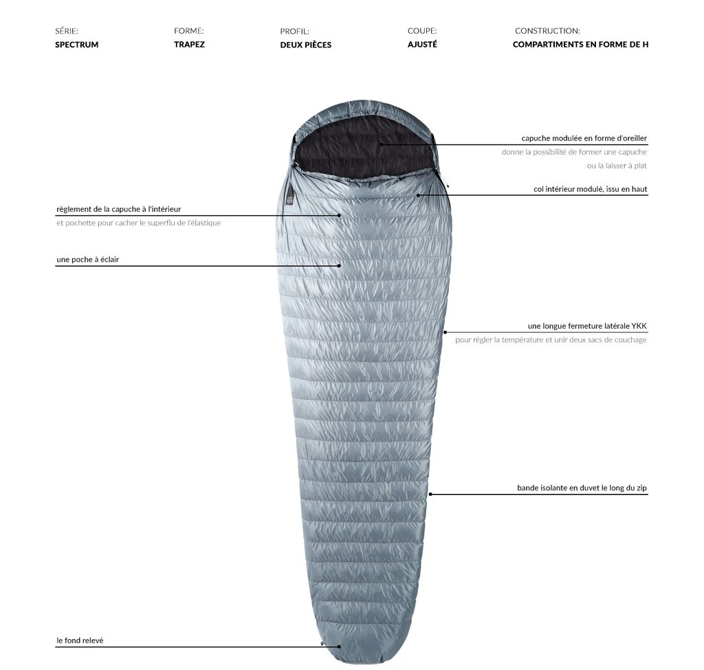 Le sac de couchage NOM 400/800 fait partie de la série Spectrum, des produits basés sur la simplicité de la forme et des solutions soigneusement pensées qui assurent une bonne flexibilité d’utilisation : voyages, randonnées… Un élément important de la série est la recherche de solutions intuitive et une facilité d’utilisation.