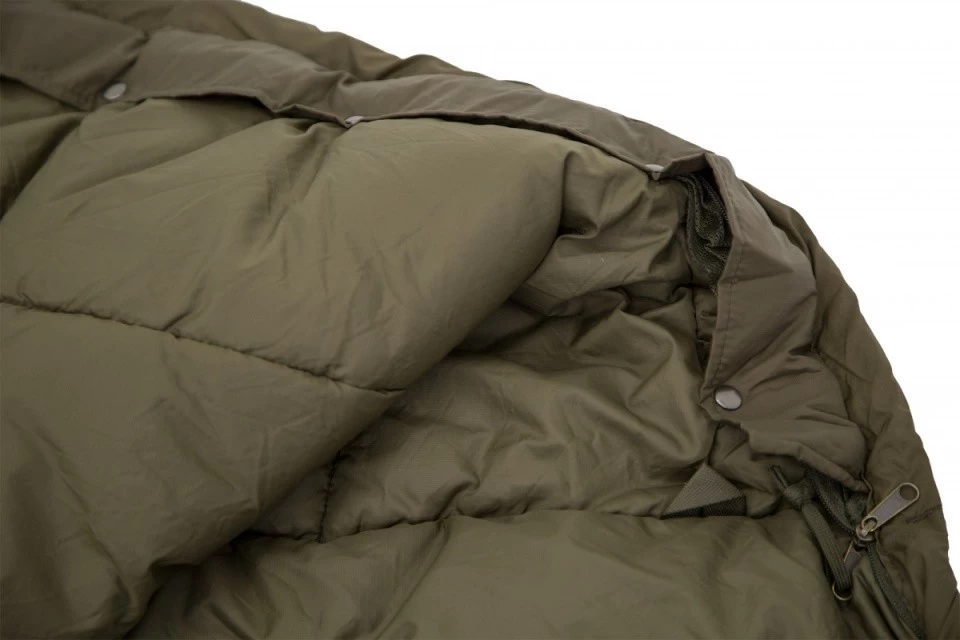 Fermeture éclair sur le côté gauche du sac de couchage avec zip double curseur, permettant de l’ouvrir par le bas ou le haut. La construction trapézoïdale pour plus de confort au niveau des pieds.