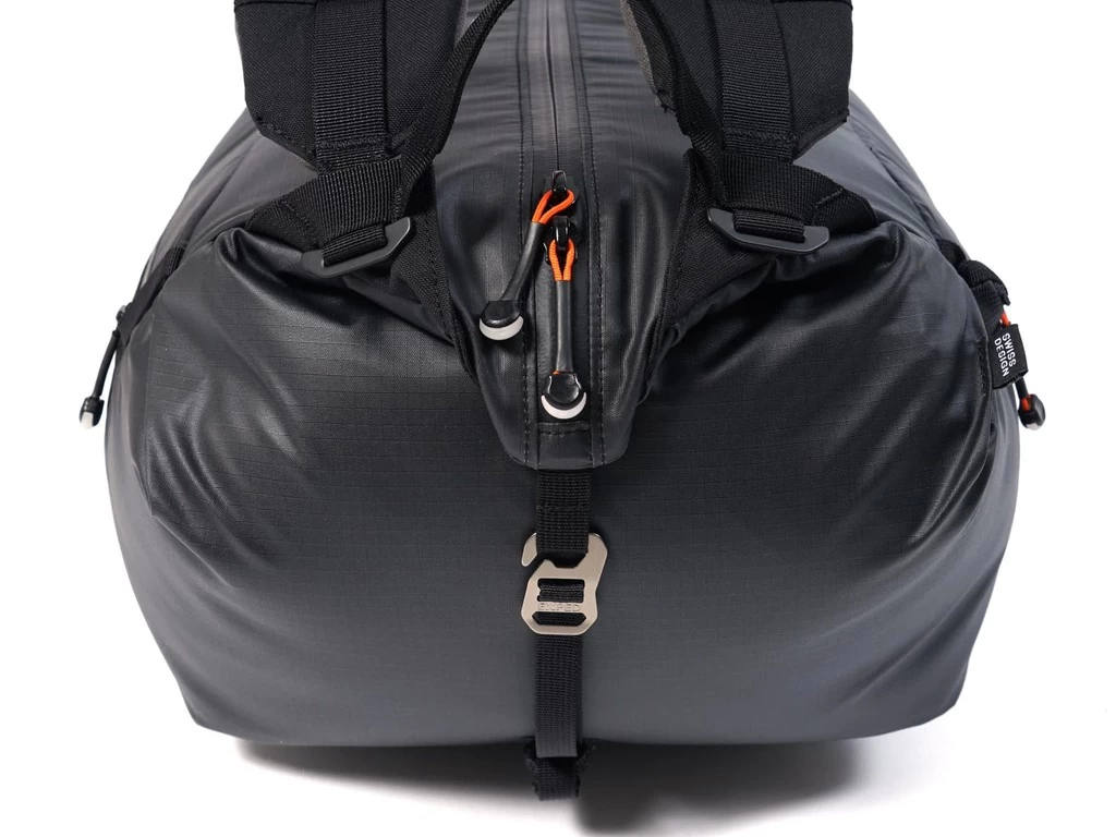 Il peut se porter de différentes manières, les bretelles et les sangles des hanches sont amovibles. Les fermetures éclair sont étanches et le sac à dos à une imperméabilité de 1500 millimètres.