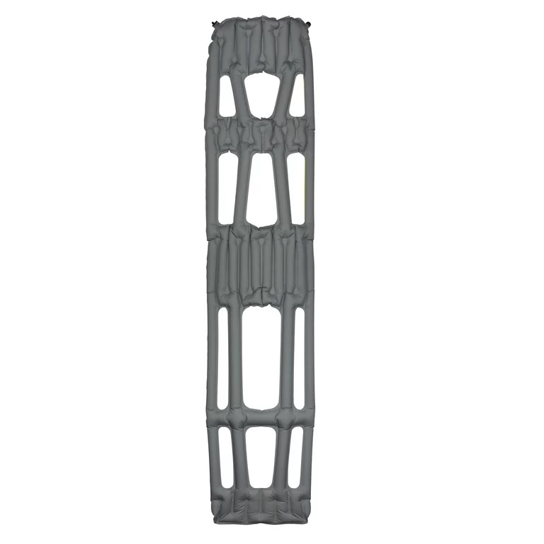Le principe du matelas Inertia X Frame est simple : il apporte un maintien et offre du confort uniquement sur les zones sollicitées pendant le sommeil. C’est le système « body mapping » de Klymit. Le sens et le positionnement des boudins sont étudiés pour s’adapter à la morphologie du dormeur. Les parties vides permettent au sac de couchage de garder le gonflant et l’intégralité de son pouvoir thermique. L’isolant n’est alors pas compressé sous le poids du corps. Avec cette méthode, le sac de couchage isole réellement !