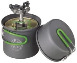 La popote est fabriquée en aluminium anodisé. Elle dispose d’un bec verseur et de graduation (ml et oz). Le réchaud Crux Lite de 72 grammes possède un excellent rendement car il permet de faire bouillir 1 litre d’eau en 3 minutes.