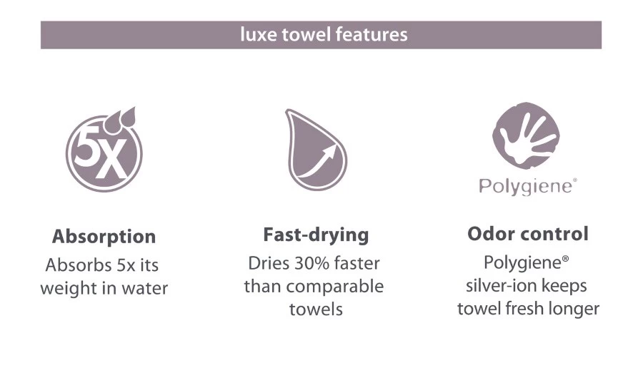 Une véritable serviette douce et agréable, qui reste compacte et très absorbante. Ne faites plus de compromis entre poids et performance avec la Luxe !