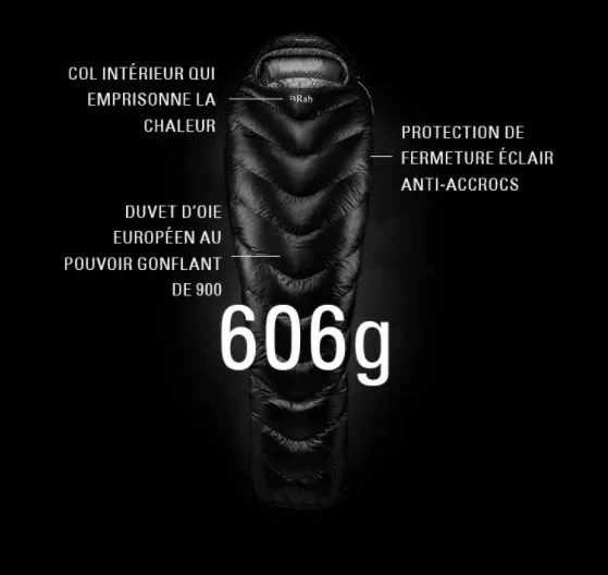 La température de confort est de -2°C pour ce sac de couchage. Les cloisons en forme de trapèze limitent au maximum les déperditions. Ses compartiments en croissant vers le bas permettent maintenir le duvet au centre du corps et de garantir un bon niveau de chaleur. Sa forme momie et son espace angulaire pour les pieds le rendent très spacieux pour son poids.
