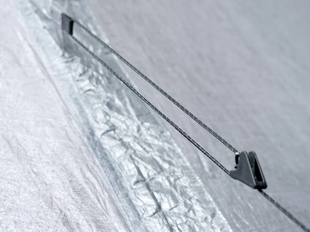 Ce vestibule est robuste, il est réalisé en Dyneema Composite Fabric de 18 g/m² et de 34 g/m² pour la jupe de neige (Colonne d’eau 20 000mm). La structure est constituée par un arceaux DAC FeatherLite NFL de 8,7 mm. Pour l’ancrage, la Samaya 2.5 Vestibule Nylon est fourni avec les toutes dernières sardines en plastique incassables de SwissPiranha.