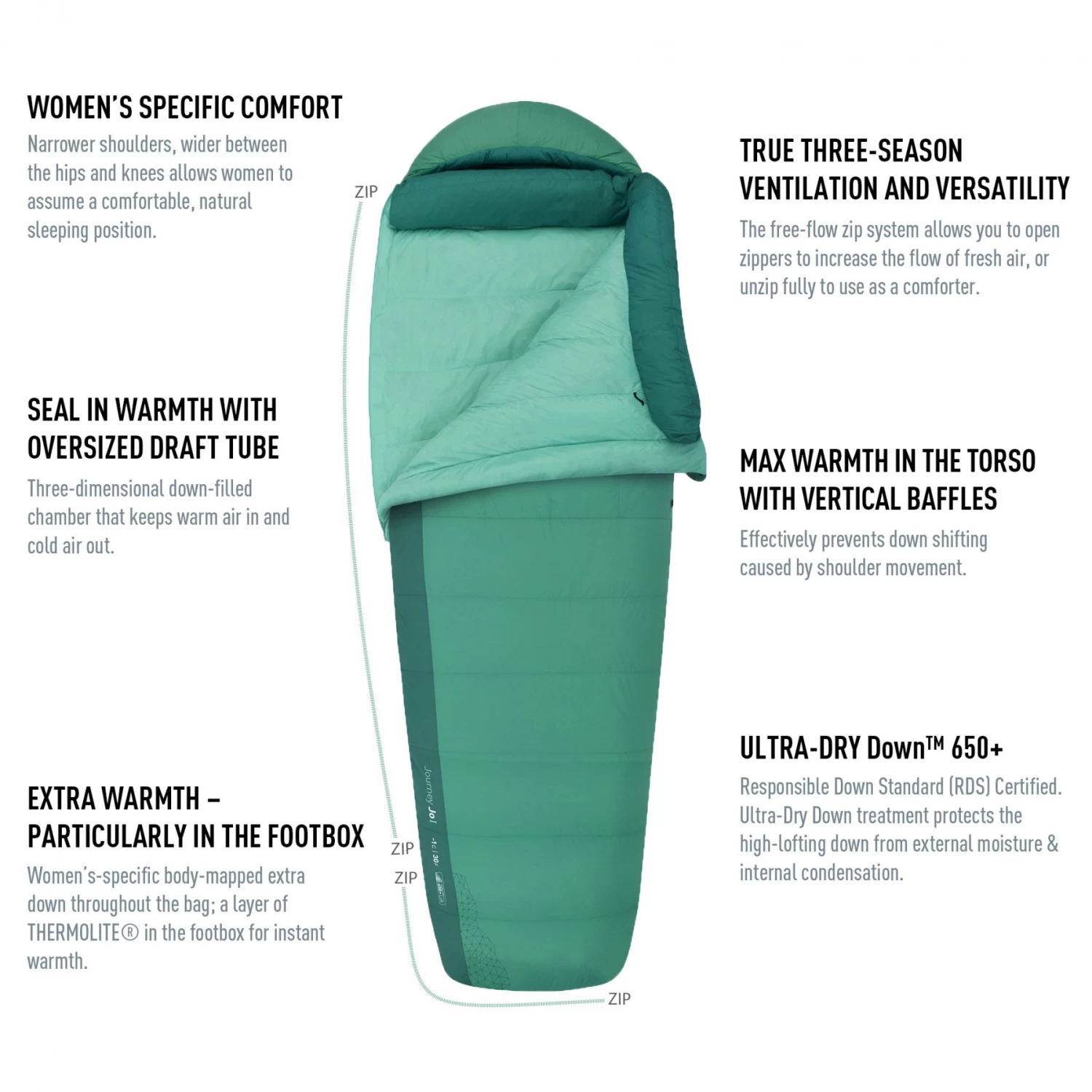 - Zip Ykk au niveau des pieds pour ouvrir le sac et l’utiliser comme une couverture.