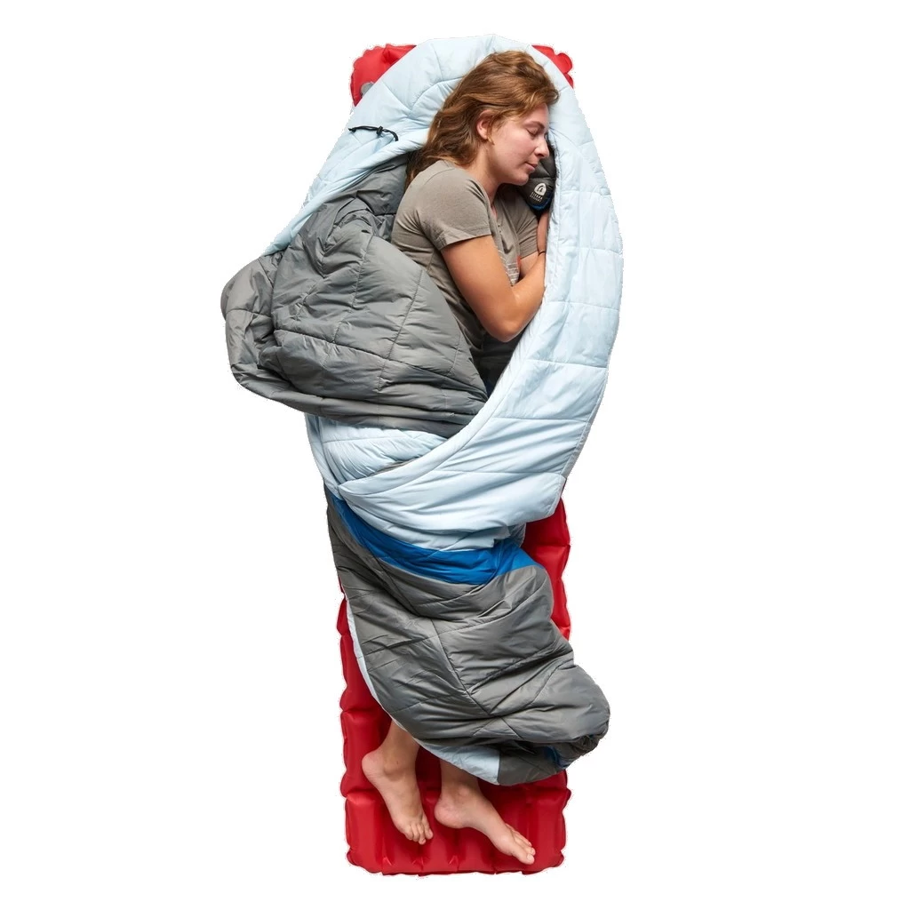 Le sac de couchage Night Cap Women’s 20 de Sierra Designs affiche une température de confort de -5°C. Doté d’une conception unique, il ne dispose pas de fermeture éclair. Un large rabat vient se glisser derrière l’épaule, offrant une grande liberté de mouvements, ainsi que la possibilité de se couvrir ou de se découvrir rapidement durant la nuit.