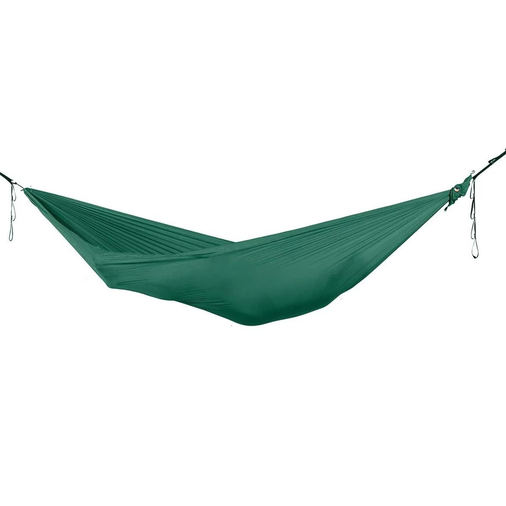 Ce hamac est simple et rapide à accrocher grâce des mousquetons ultra-légers. Le kit de fixation est vendu séparément.