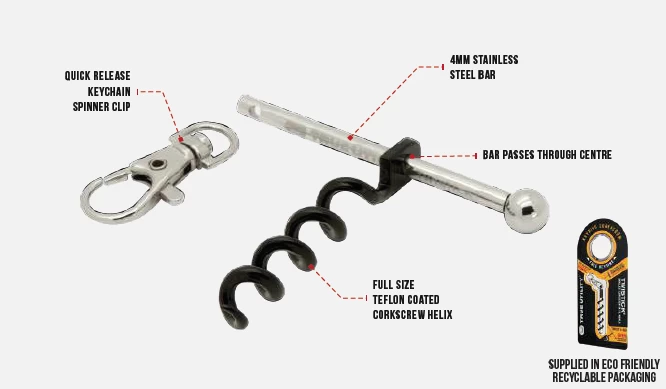Le Twistick de True Utility est un tire-bouchon extrêmement léger et compact. Il est pliable et pèse seulement 14 grammes.